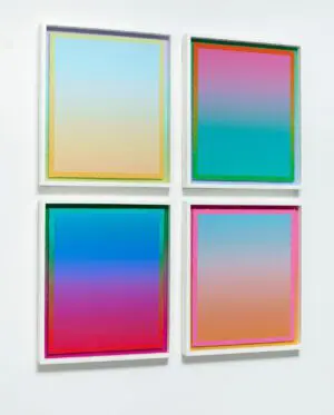 Boo Saville (b. 1980) lives and works in Kent. Saville is a contemporary British painter best known for her large-scale abstract paintings and small-scale figurative works; Saville primarily works with oil paint but also draws and makes prints. Her artistic practice explores themes surrounding our emotional relationship with colour and metaphor within a post internet age.