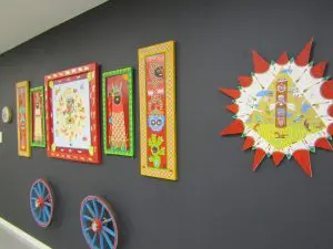 Free from boundaries, borders or labels, the artist invites the viewer to find their own connections with the works. The use of vivid colours, different materials and subject matter connected with the Far East and indigenous art of Central America add to the intrigue.