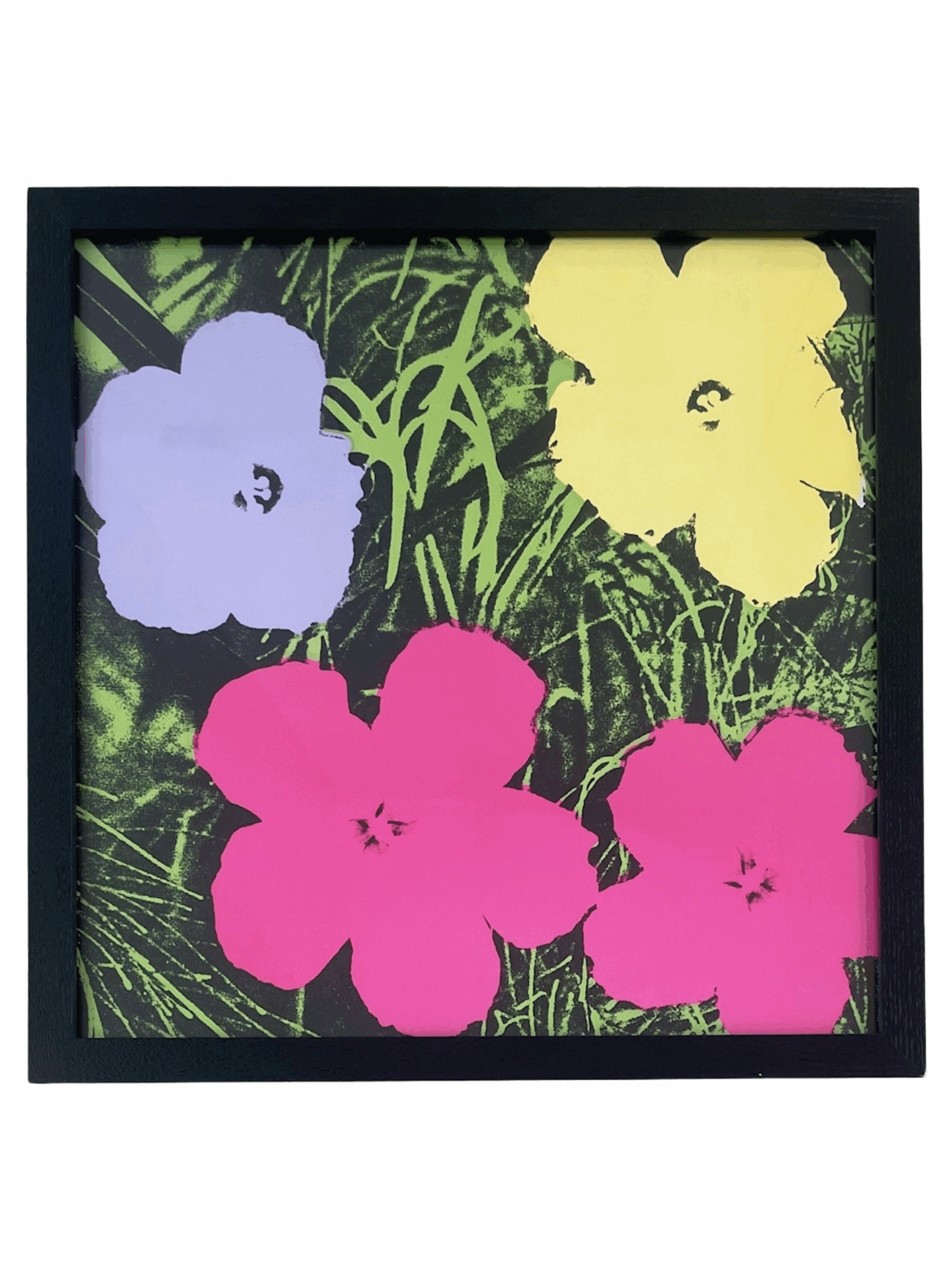 Throughout Andy Warhol’s career he often returned to subjects that interested him. In the 1950’s while working as a commercial illustrator he created several delicate works of flowers. In the 1960’s he created his most famous flowers series. These all over colourful compositions were exhibited in various orientations, and the silkscreen process flattened the subjects to create a beautiful painting that is integrally abstract. In the 1980’s, he created a proposal for the exterior of the Tacoma Dome of flowers, and after liking these images so much he created a series of screen-prints of Daisies.
