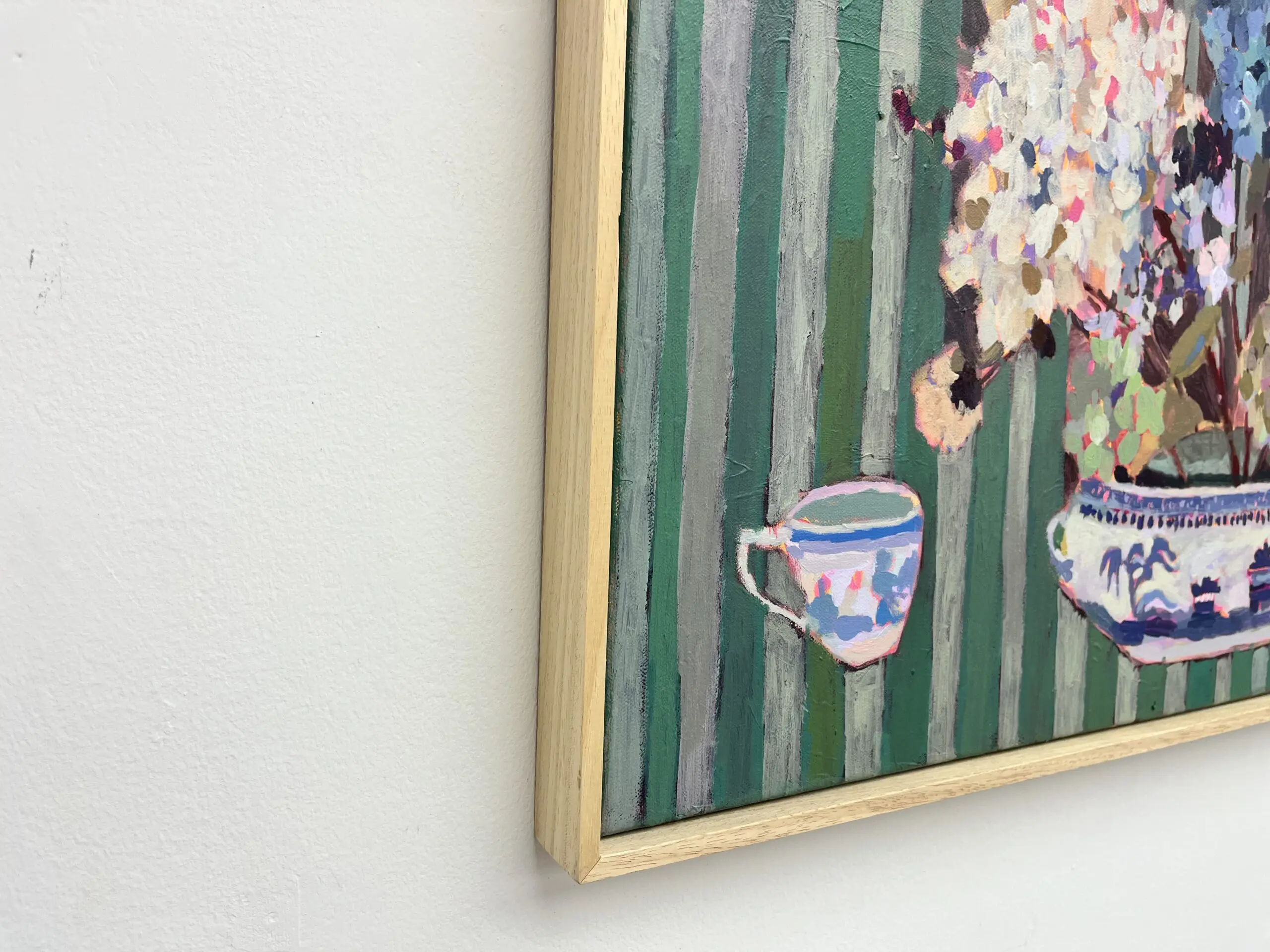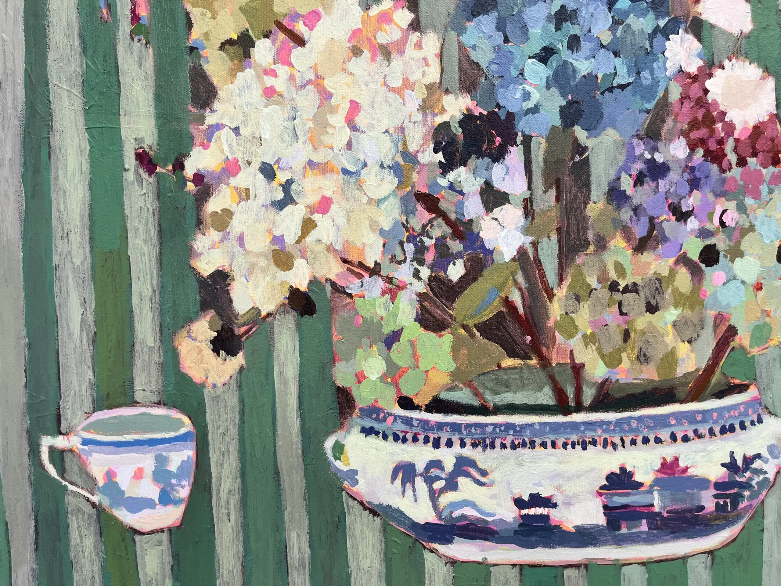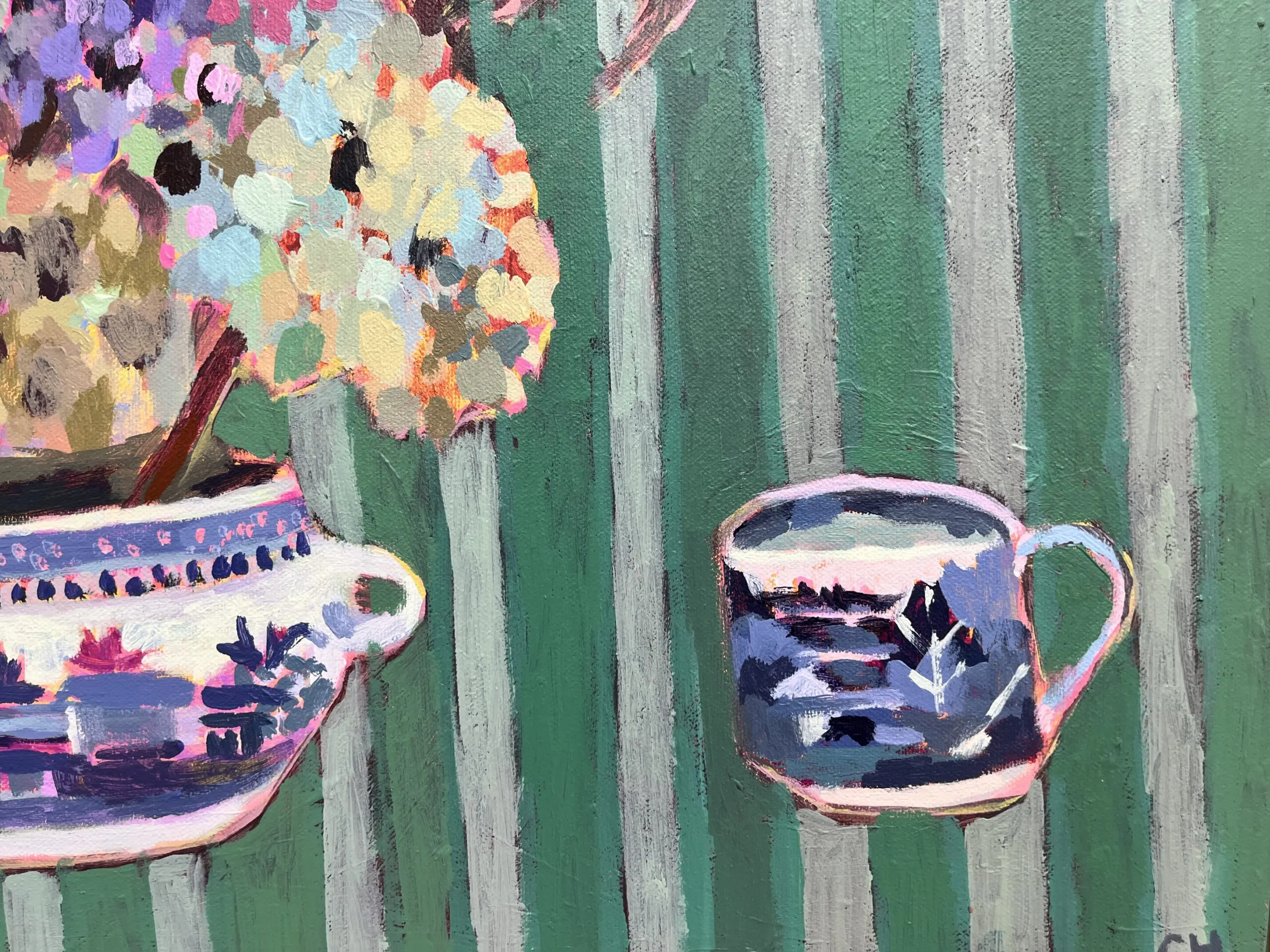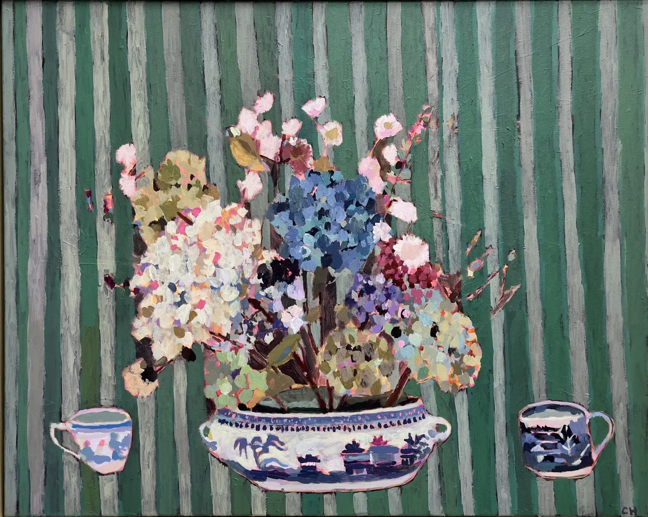 Charlotte Hardy has a fascination with pattern, interpreting it in a playful and illustrative way. Shapes are refined into a subtle pattern and there is an ornamental flatness. Still life objects are a celebration of rich decoration. A love of drawing from observation with an energetic and expressive line defines the work. The compositions and use of space have a sense of stillness and simplicity. The contrast between abundance and a pared-back approach is a constant theme.
