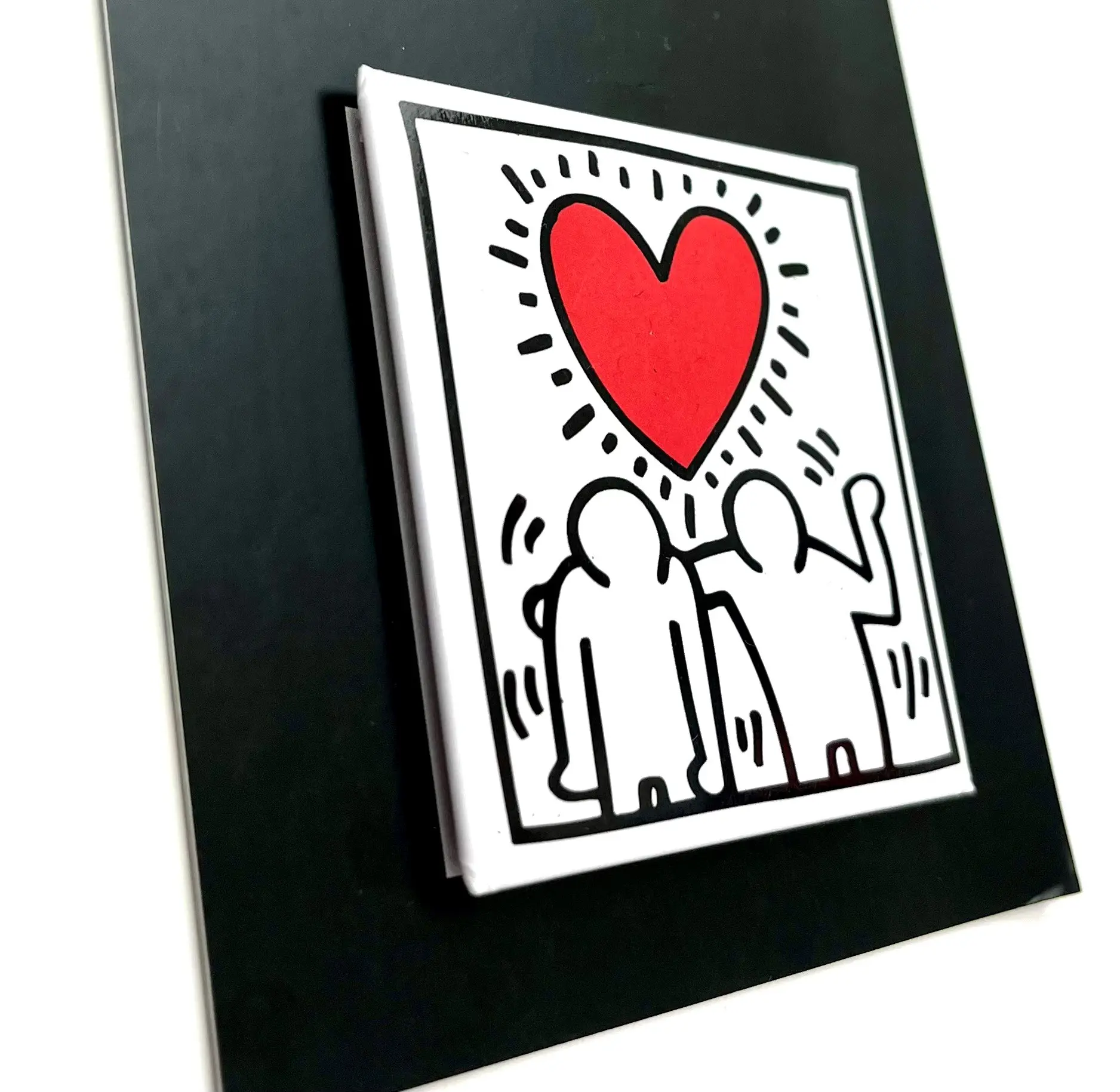 Although Keith Haring often created politically challenging artworks he also wanted to communicate the importance of love and kindness to his audience. The embracing figures situated under a radiant heart in ‘Untitled (Be Mine)’ can not be identified by their age, race or gender. This was Haring’s way of saying that love has no restrictions.