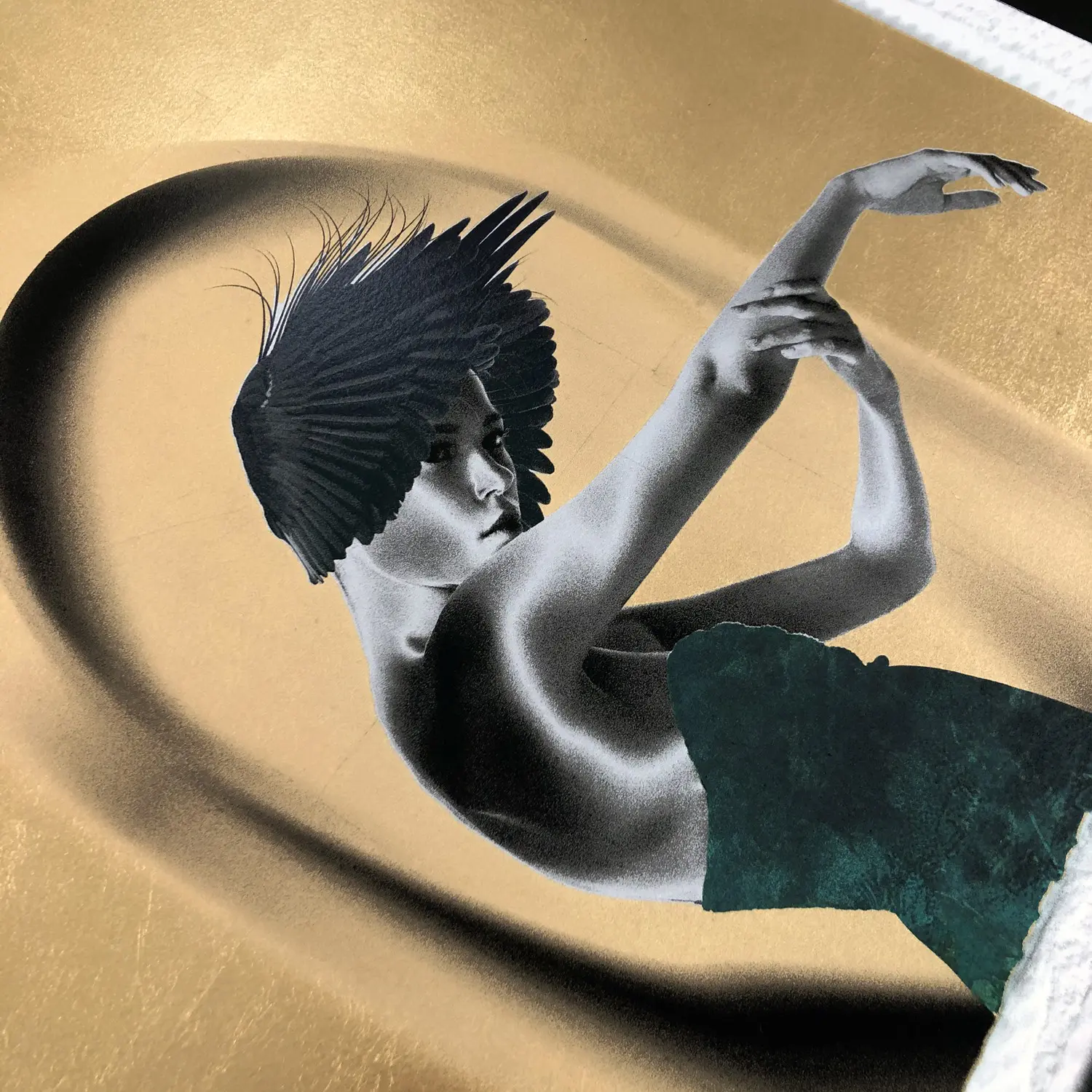 Early on he became fascinated by various print processes as well as photography. It was only a matter of time until the autodidact came about the classic and almost forgotten Polaroid film more than a decade ago. He has since been pushing the limits and exploring the manipulative potential of this light sensitive material for his collages. He applies leaf of precious metals and sometime’s acrylic colour in the finishing process by hand, thereby creating a unique piece with each artwork.