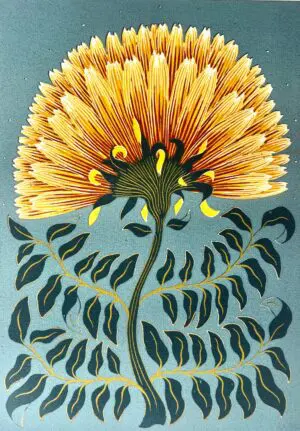 Grace Gillespie is a singer-songwriter, who began making artworks as covers for her music releases. Over the pandemic Grace was furloughed and lived with her parents, both of whom are printmakers. This time was spent learning, experimenting and building a strong love for the medium of print – especially the simplicity and boldness of lino! Now based in Bristol, Grace continues to develop her work, focussing on bright, graphic designs, and more recently creating a series of small edition ‘reduction’ prints from her home studio.