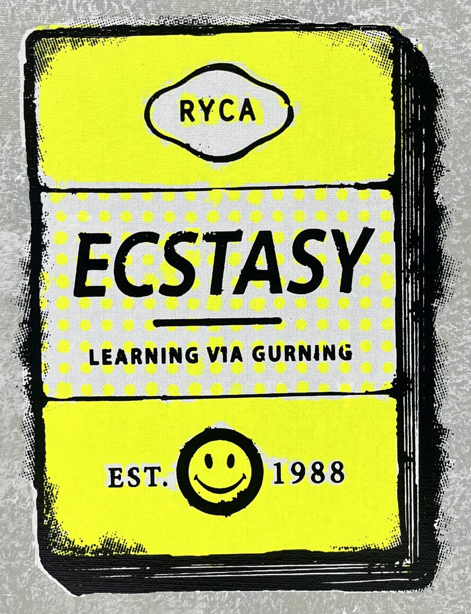 Many of his signs, made with glass, resin, gold and paint, explore the use of colloquial words, song lyrics and popular quotes. His collection of expletive-insertions, in which an expletive is inserted into a word, has become a symbol of Ryan’s playful diving into British popular culture; his experimentation with lyrics have resulted in highly collectable editions amongst musicians, music producers and writers.