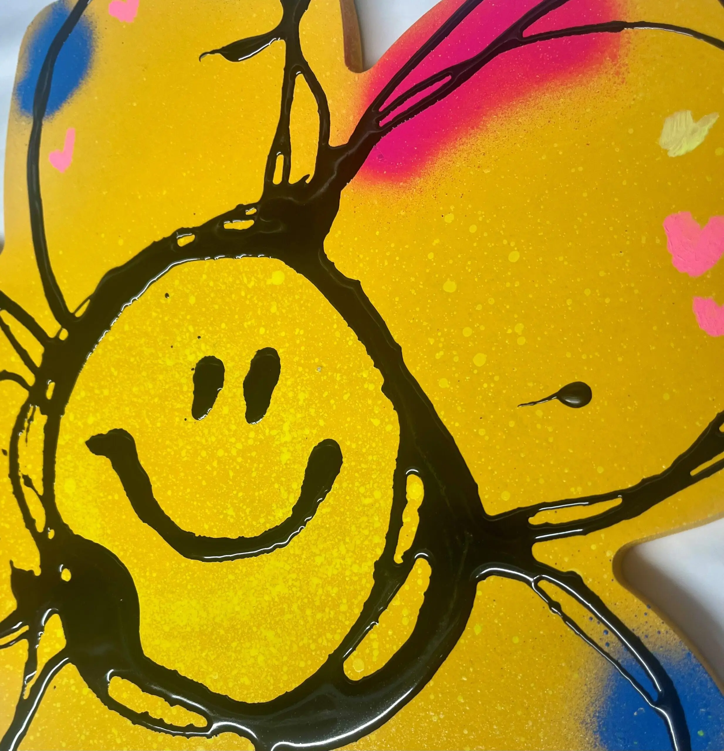 Many of his signs, made with glass, resin, gold and paint, explore the use of colloquial words, song lyrics and popular quotes. His collection of expletive-insertions, in which an expletive is inserted into a word, has become a symbol of Ryan’s playful diving into British popular culture; his experimentation with lyrics have resulted in highly collectable editions amongst musicians, music producers and writers.