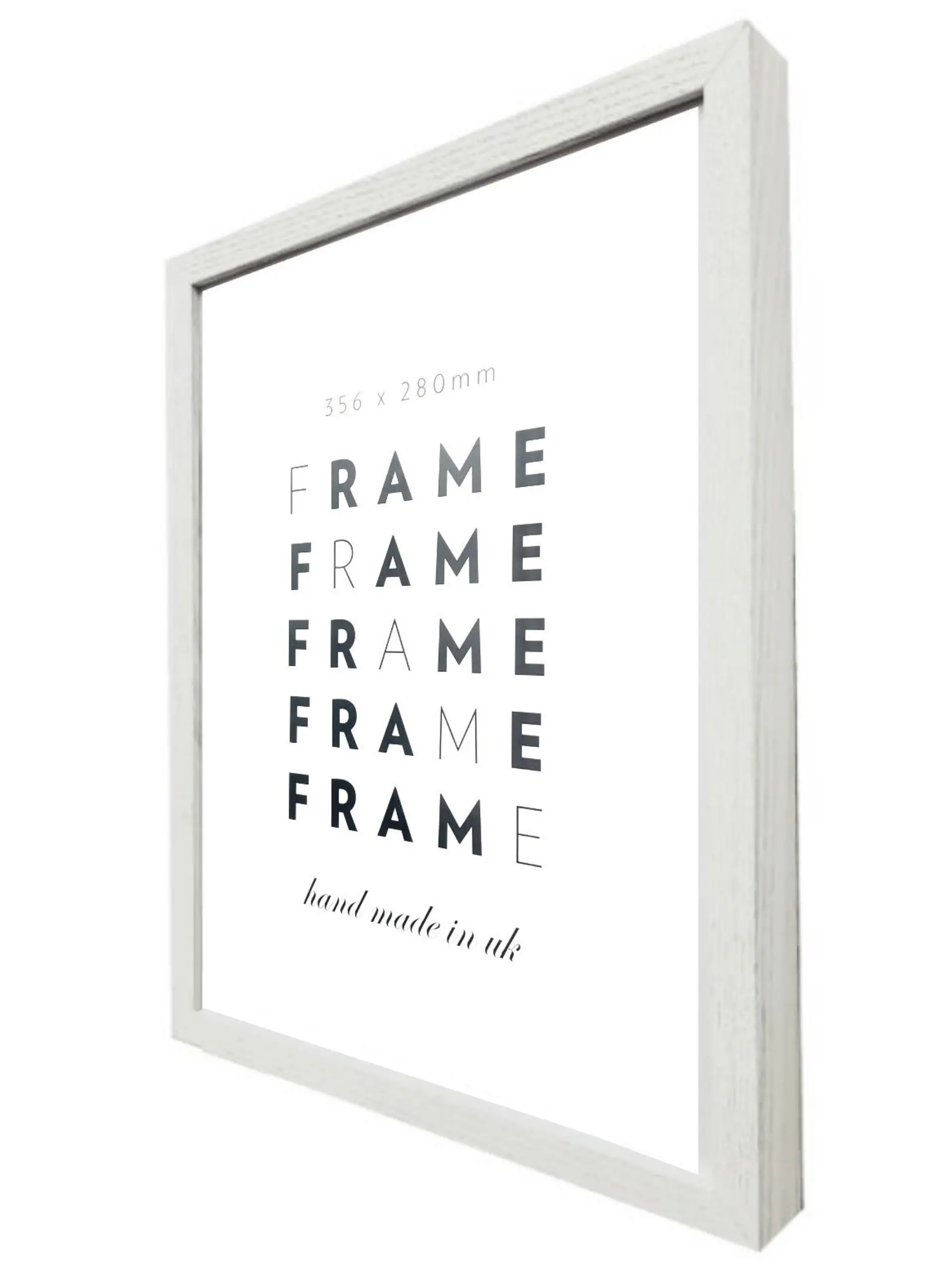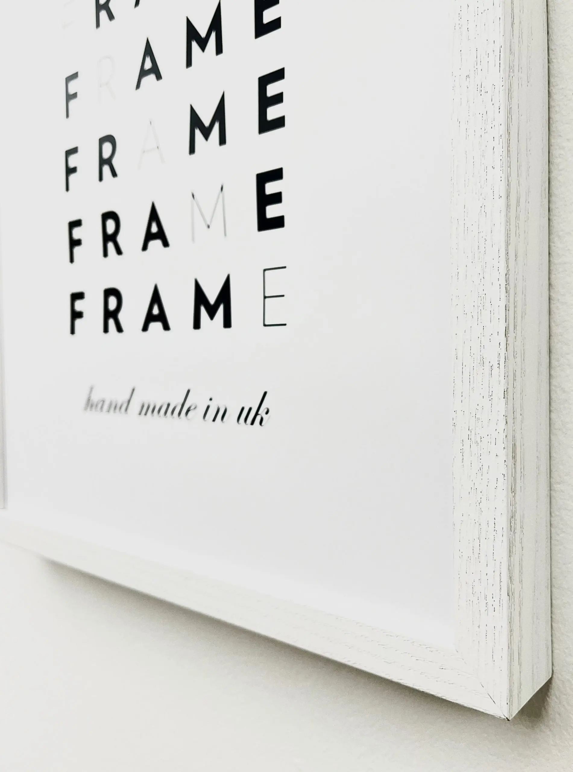 This wooden frame is painted in white with a water-based medium (which is non-flammable and more environmentally friendly than oil-based paint) and apply a coloured lacquer which creates a deep lustre.