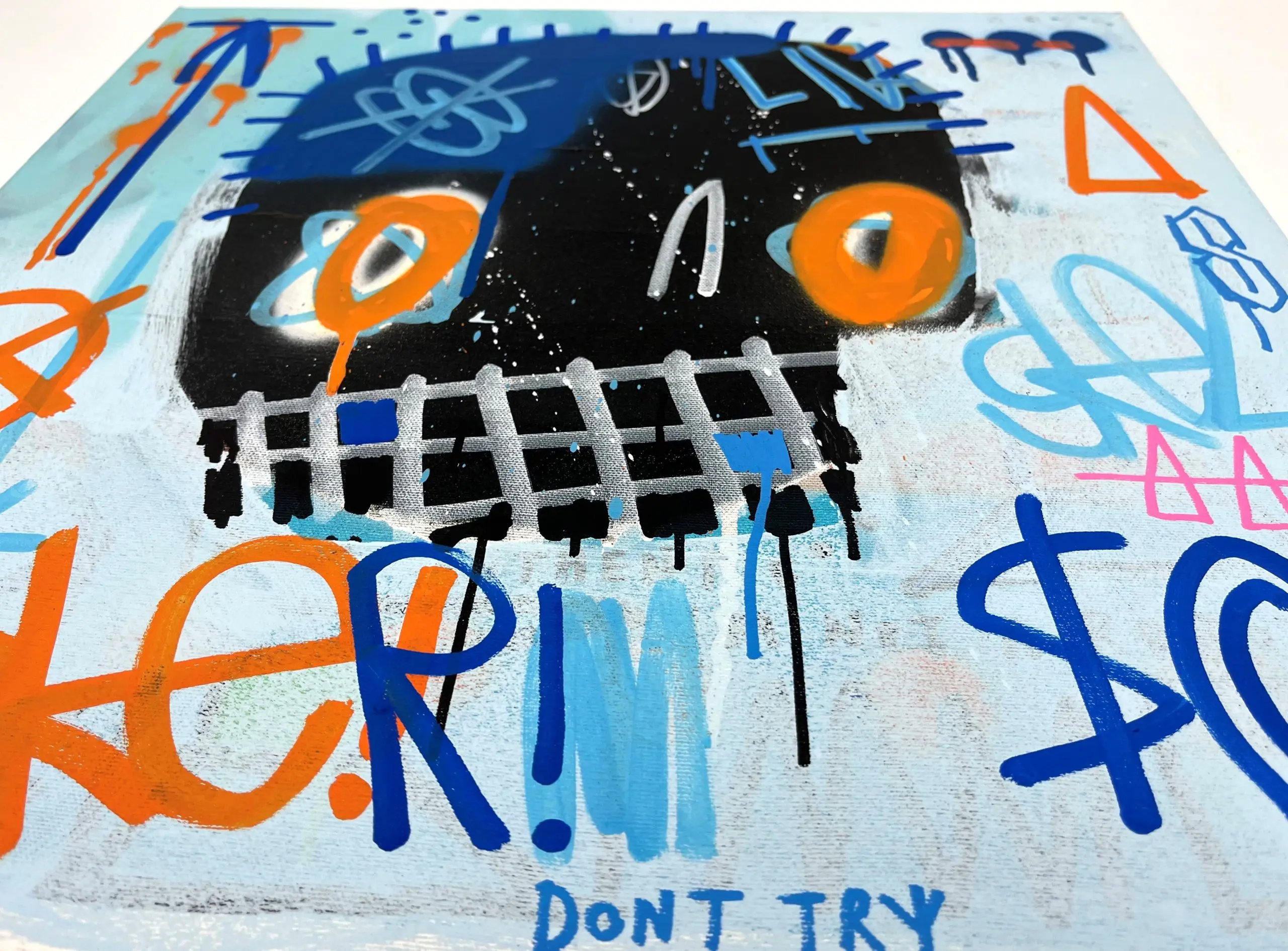 Originally inspired by a trip to Mexico and the ‘Dia De Los Muertos’ festival of the dead. This later fused with an interest in street art and numerous other contemporary influences, that lead the artist to arrive at his own uniquely recognisable style.