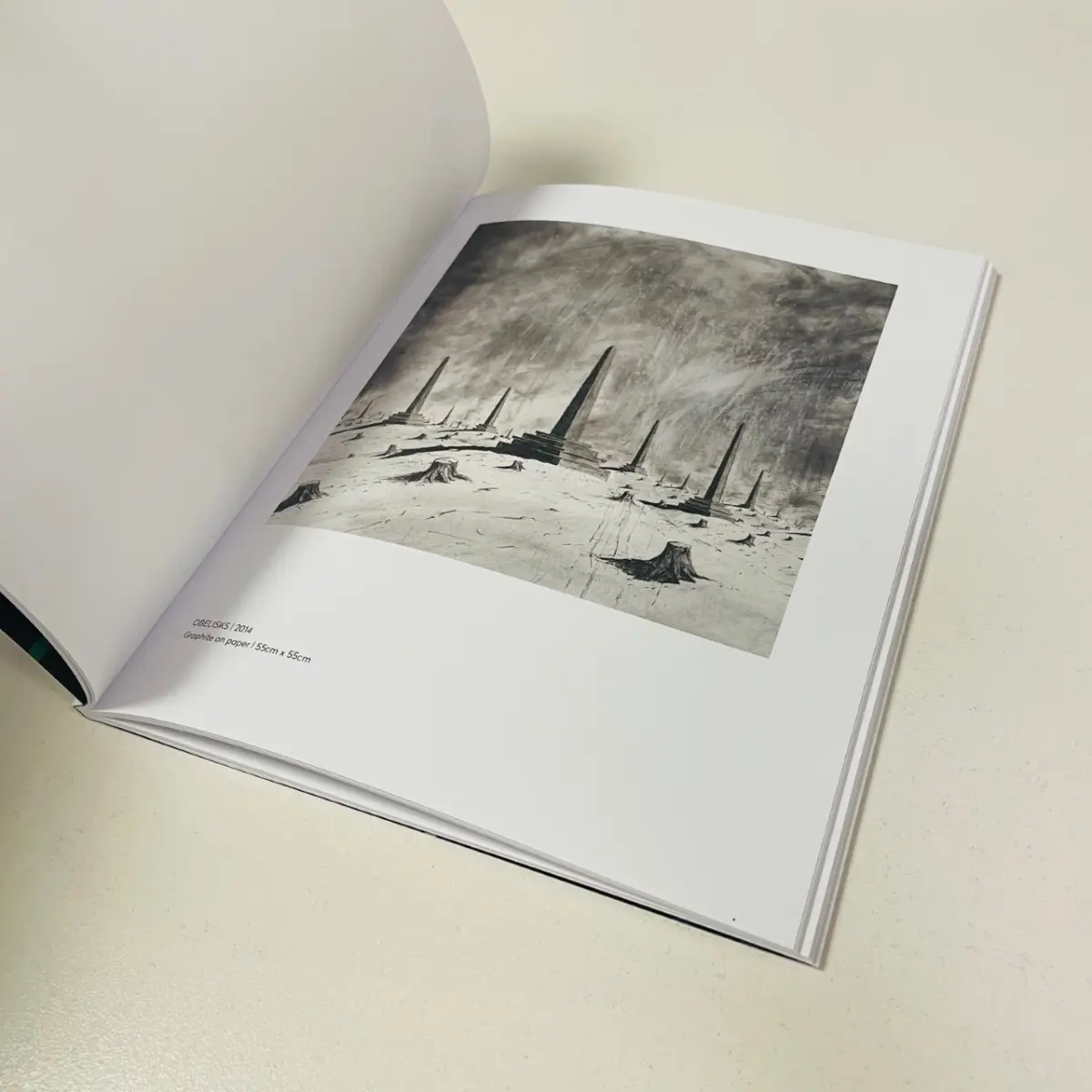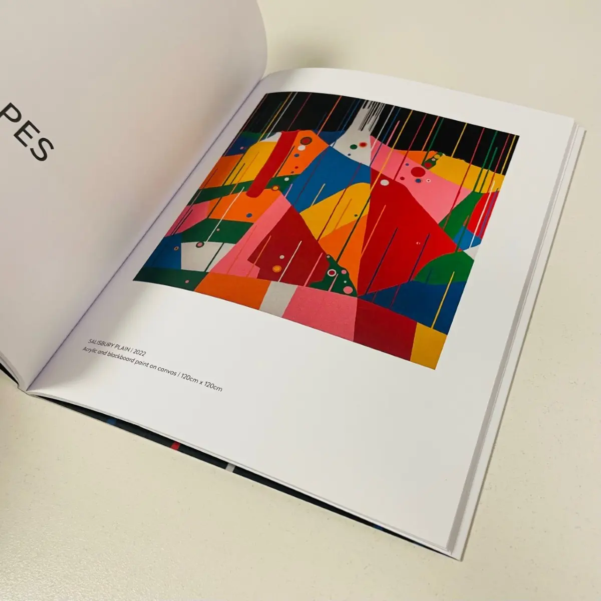 The catalogue was created to celebrate the new Stanley Donwood exhibition, presented at Saatchi Gallery from the 21th October 2022 to the 21th of November 2022. The catalogue feature all the 23 art works displayed during the exhibition, all from his new series Modern Landscape that whish to analyse the relationship between modern life and nature.