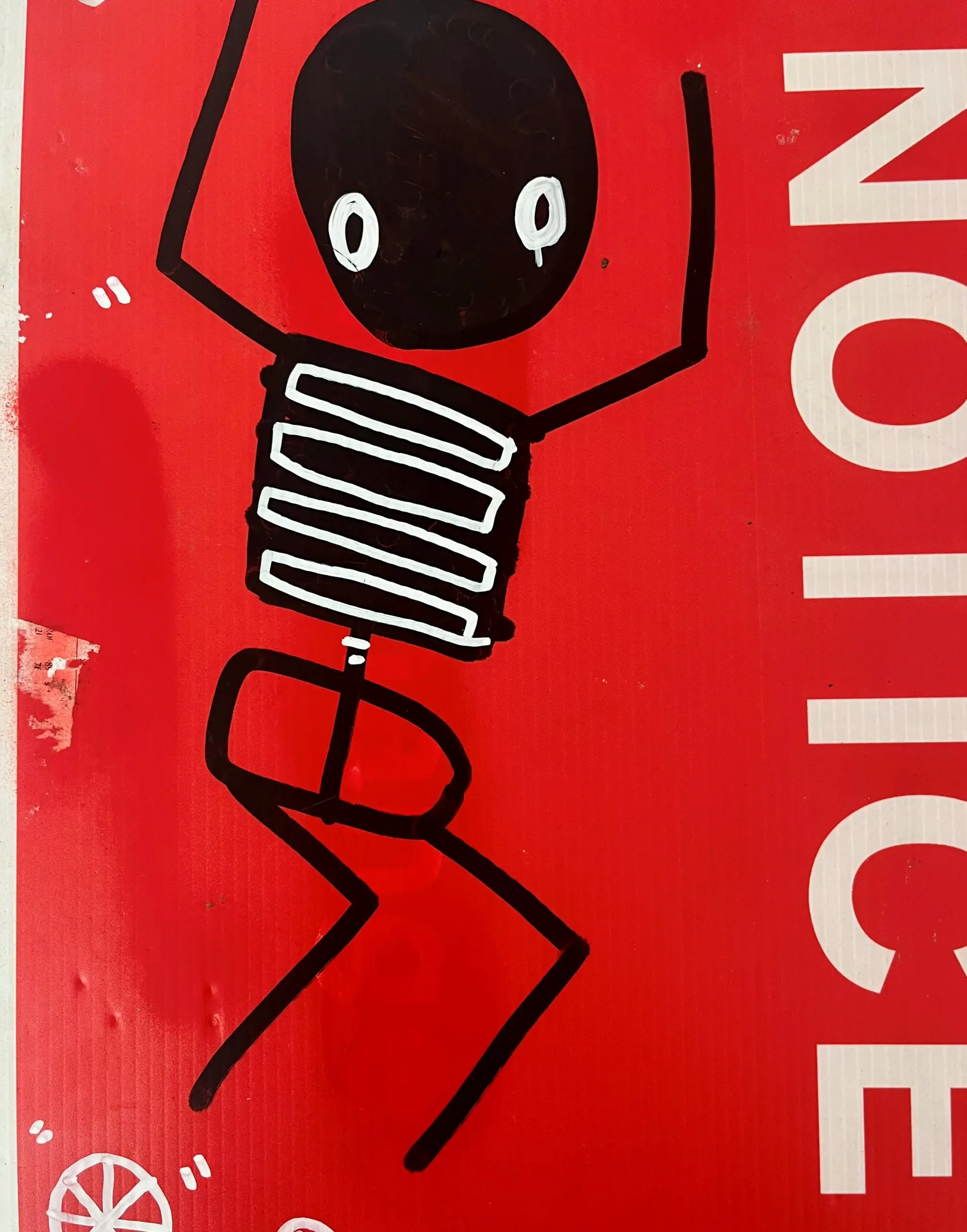 Skeleton Cardboard studied Graphic Design at Camberwell College of Art. The artist was particularly inspired by a trip to Mexico City and later left paintings of skeletons on scraps of cardboard for people to discover on the streets of London. The artists lives and works in east London.