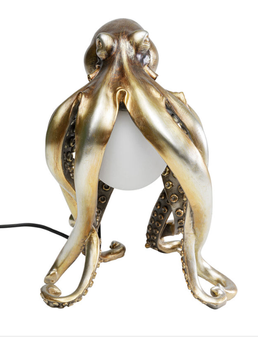 This octopus in polyresin keeps a white glass shade between its tentacles. It creates a marine and steampunk atmosphere in your home.