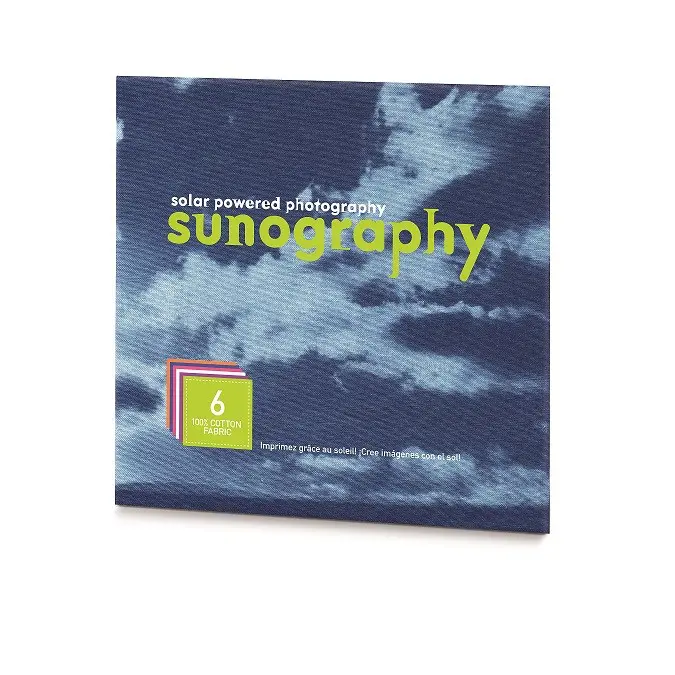 Place any object or transparency on the Sunography fabric, expose to bright sunlight and rinse to reveal a rich blue print. Sunography is light sensitive on both sides to make two-sided prints which can also be toned yellow or sepia using rinses with common household liquids.