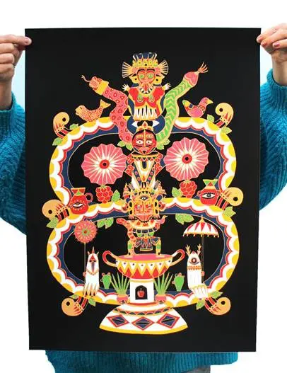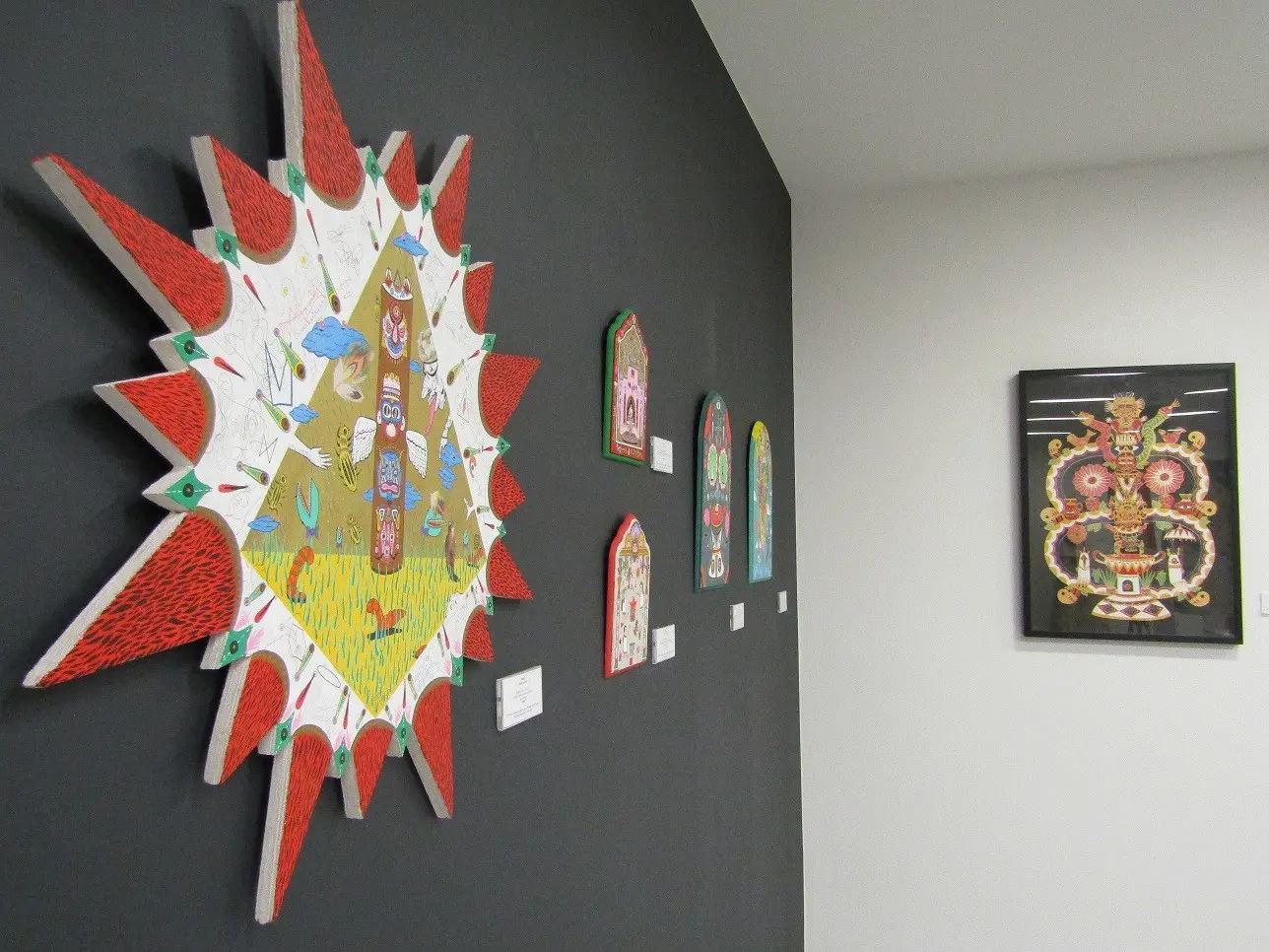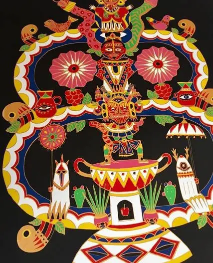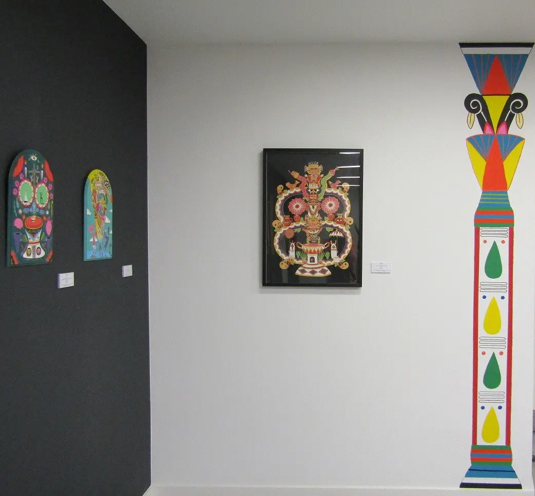 Free from boundaries, borders or labels, the artist invites the viewer to find their own connections with the works. The use of vivid colours, different materials and subject matter connected with the Far East and indigenous art of Central America add to the intrigue.