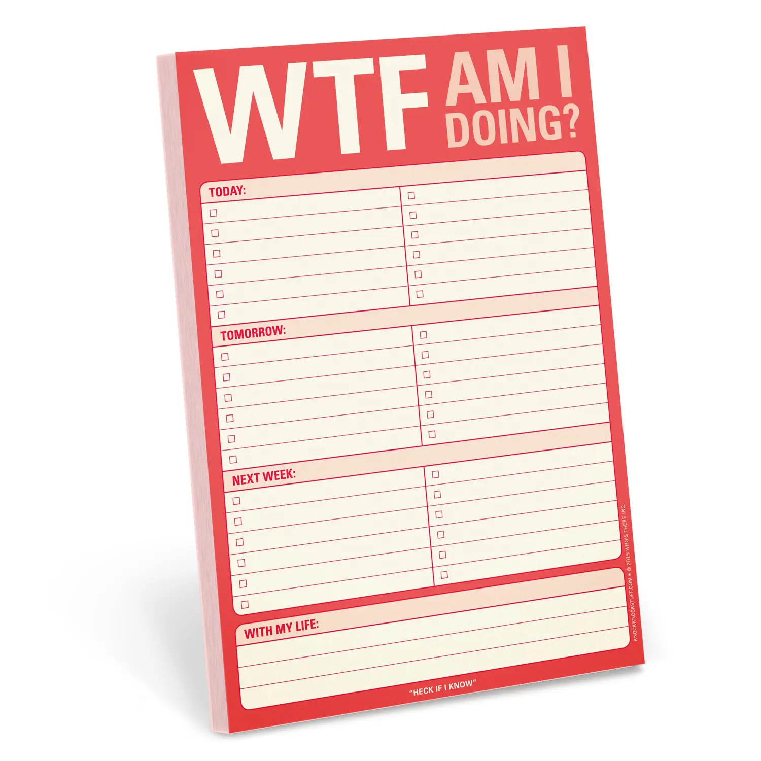 Feeling lost? Bewildered? Unfocused? Whether you’re trying to remember what to get at the market or contemplating a total life change, this pad is at your service. And if you still can’t figure it out, simply tear off the sheet and start fresh tomorrow.
